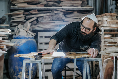 Our wood and epoxy products, including tables, butcher blocks, and mezuzahs, are not meant for prolonged exposure to extreme weather conditions.