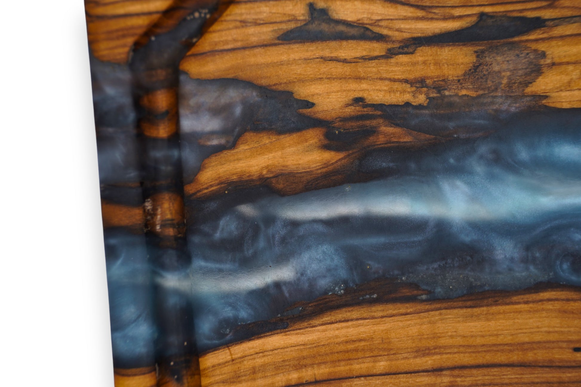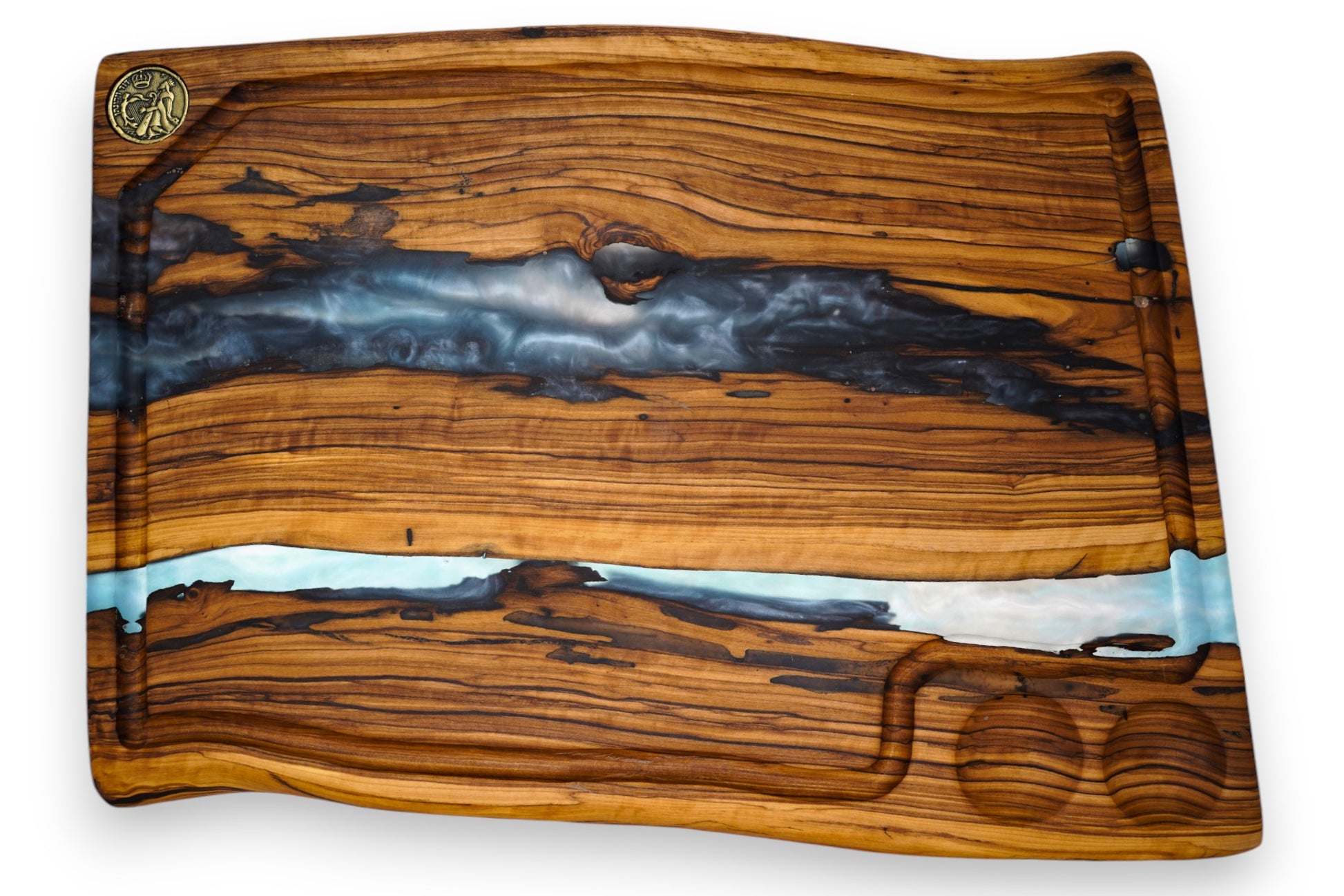 Our butcher block is made from ancient Israeli olive wood, hundreds and even over a thousand years old, combined with high-end crystal epoxy that reveals the natural grain, depth, and textures etched into the wood over generations.