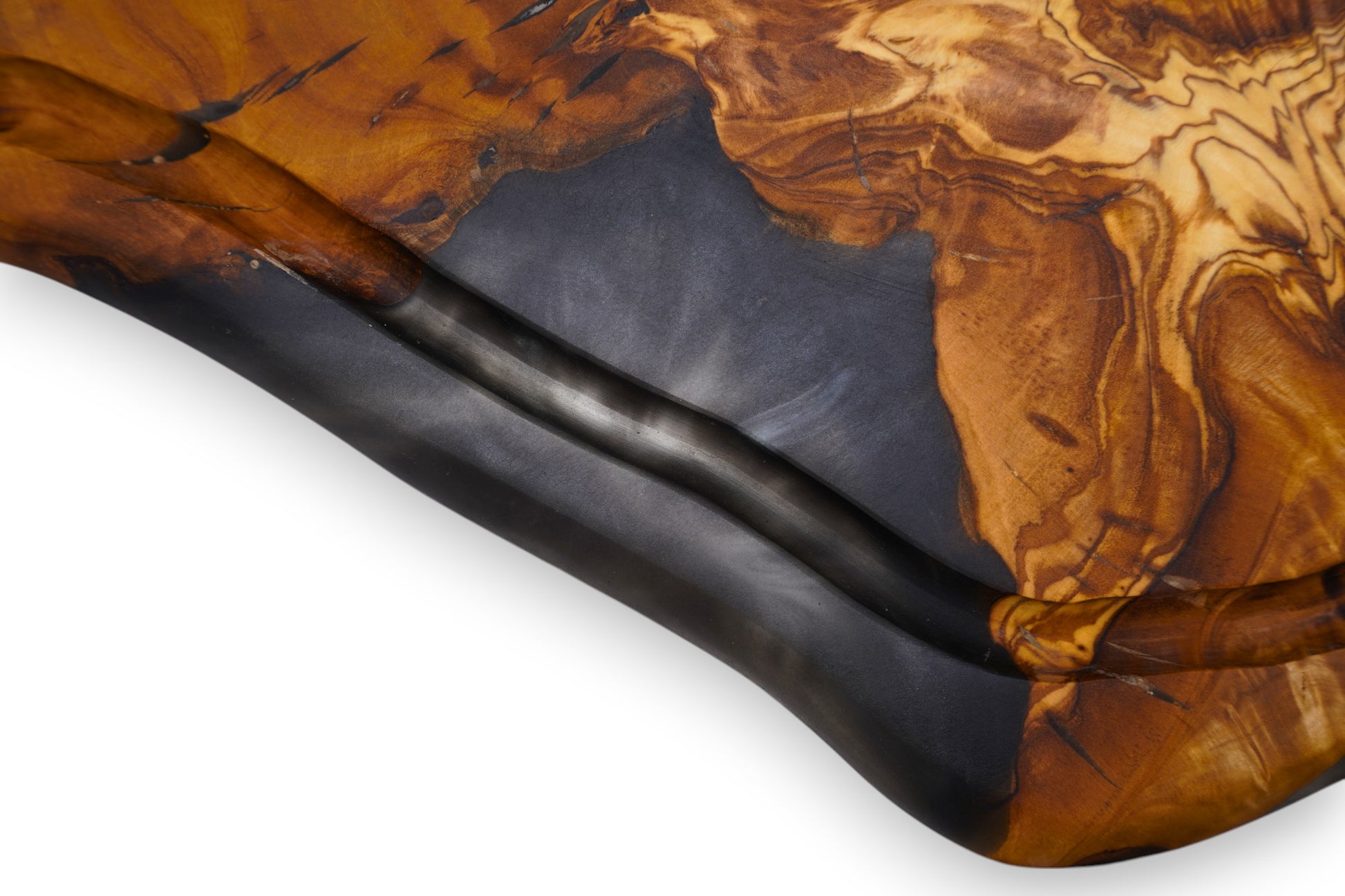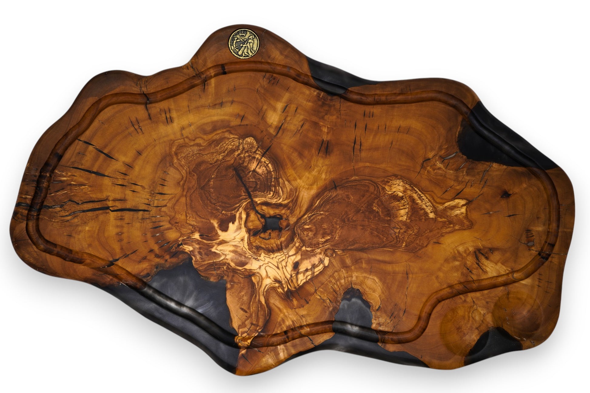 Our butcher block is made from ancient Israeli olive wood, hundreds and even over a thousand years old, combined with high-end crystal epoxy that reveals the natural grain, depth, and textures etched into the wood over generations.