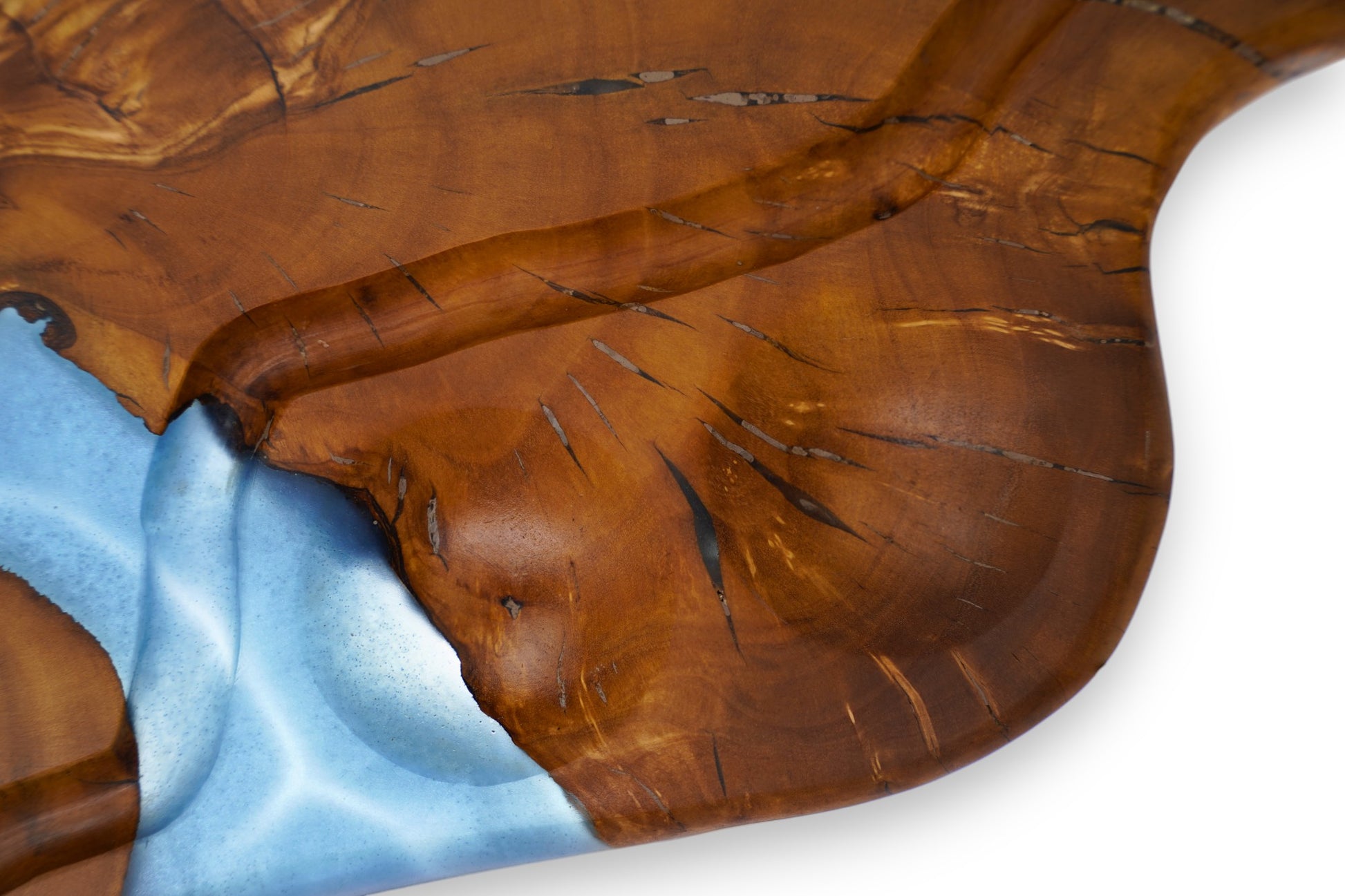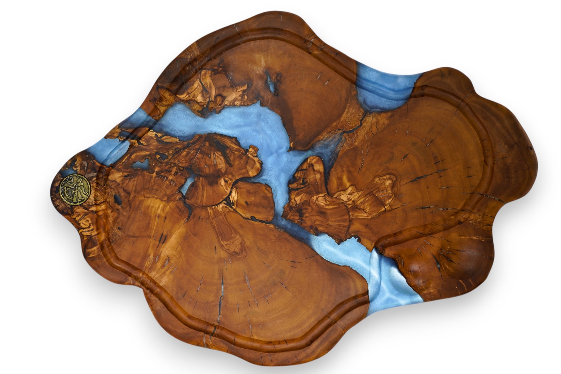 Our butcher block is made from ancient Israeli olive wood, hundreds and even over a thousand years old, combined with high-end crystal epoxy that reveals the natural grain, depth, and textures etched into the wood over generations.