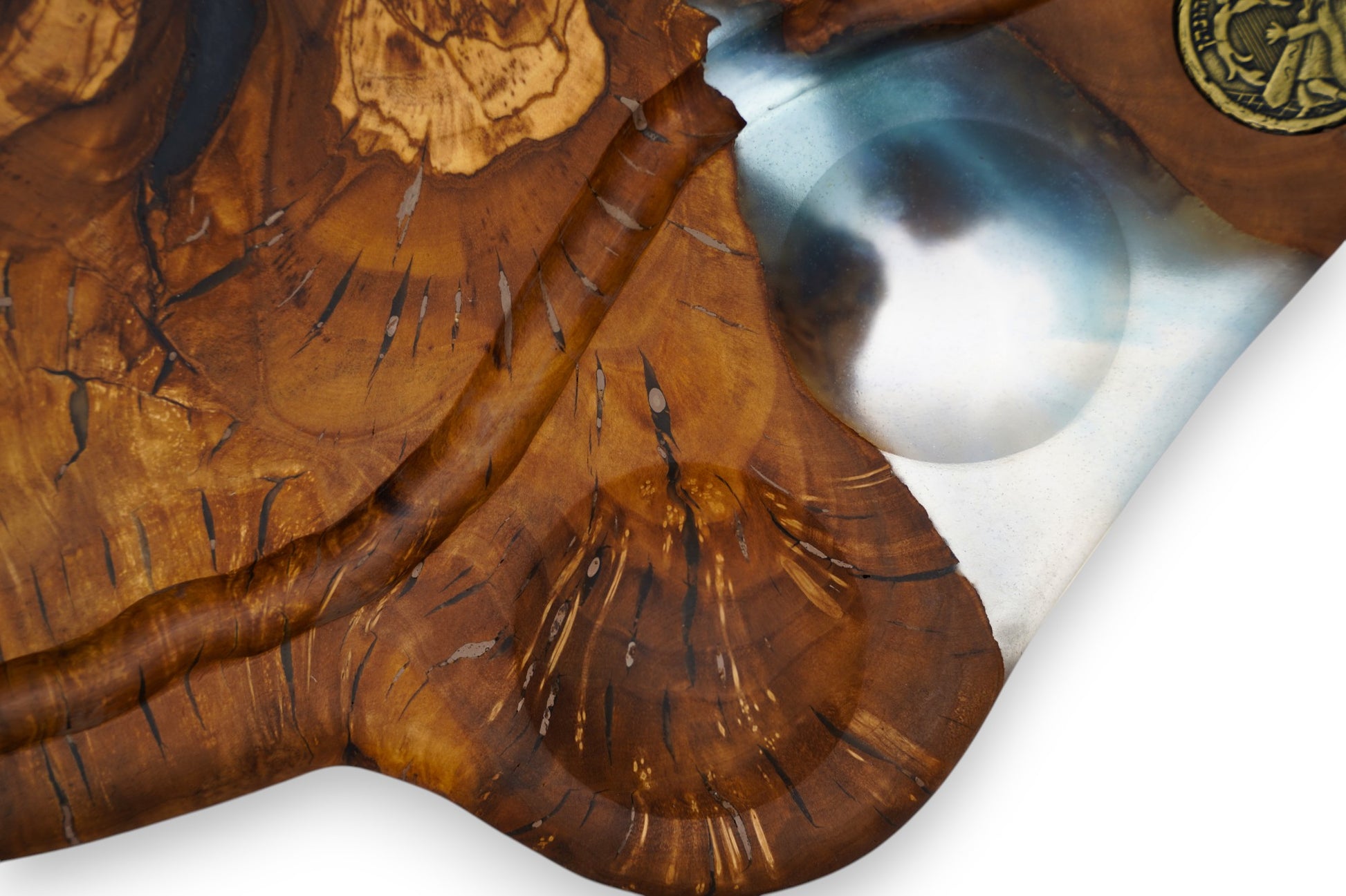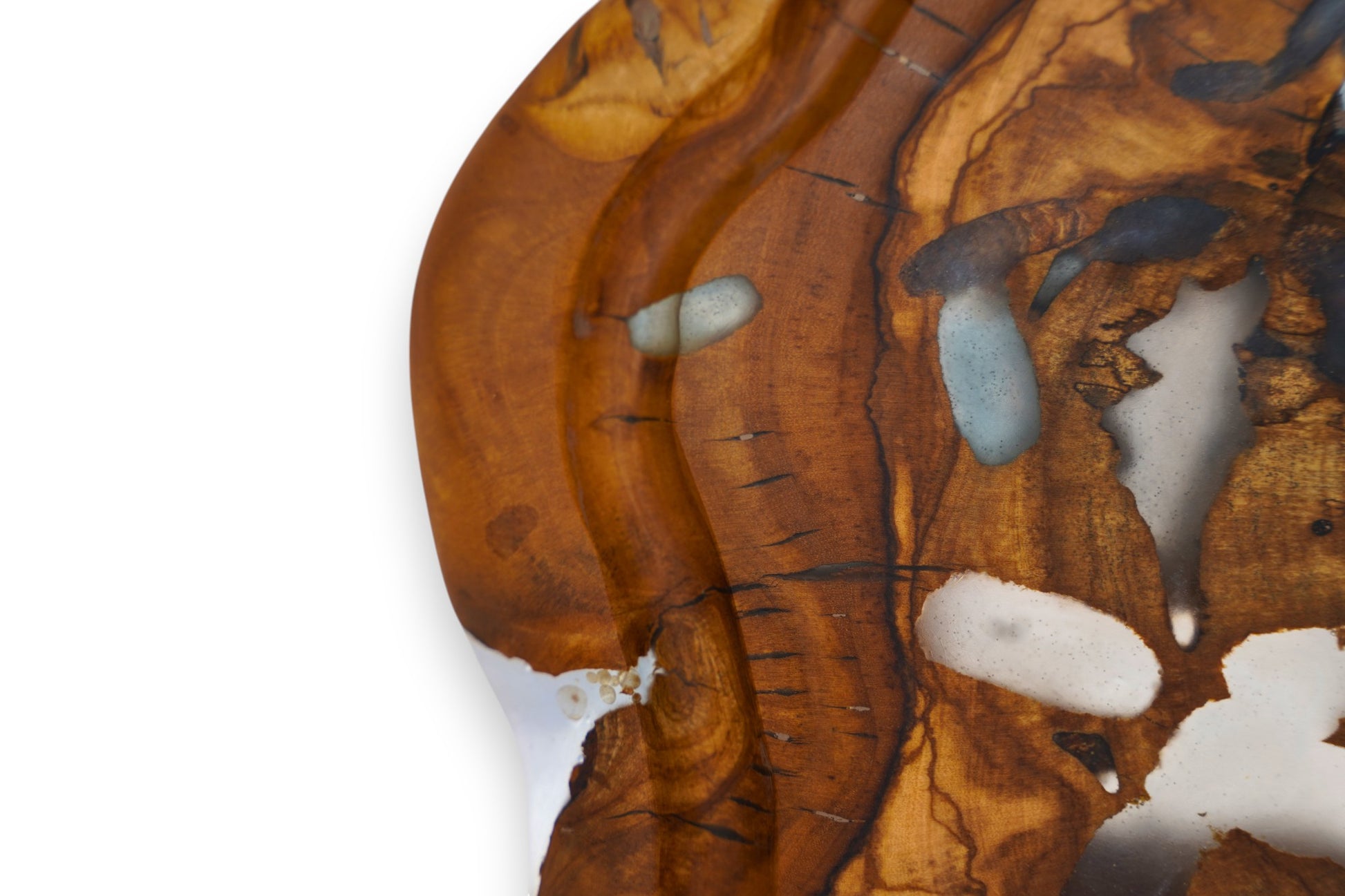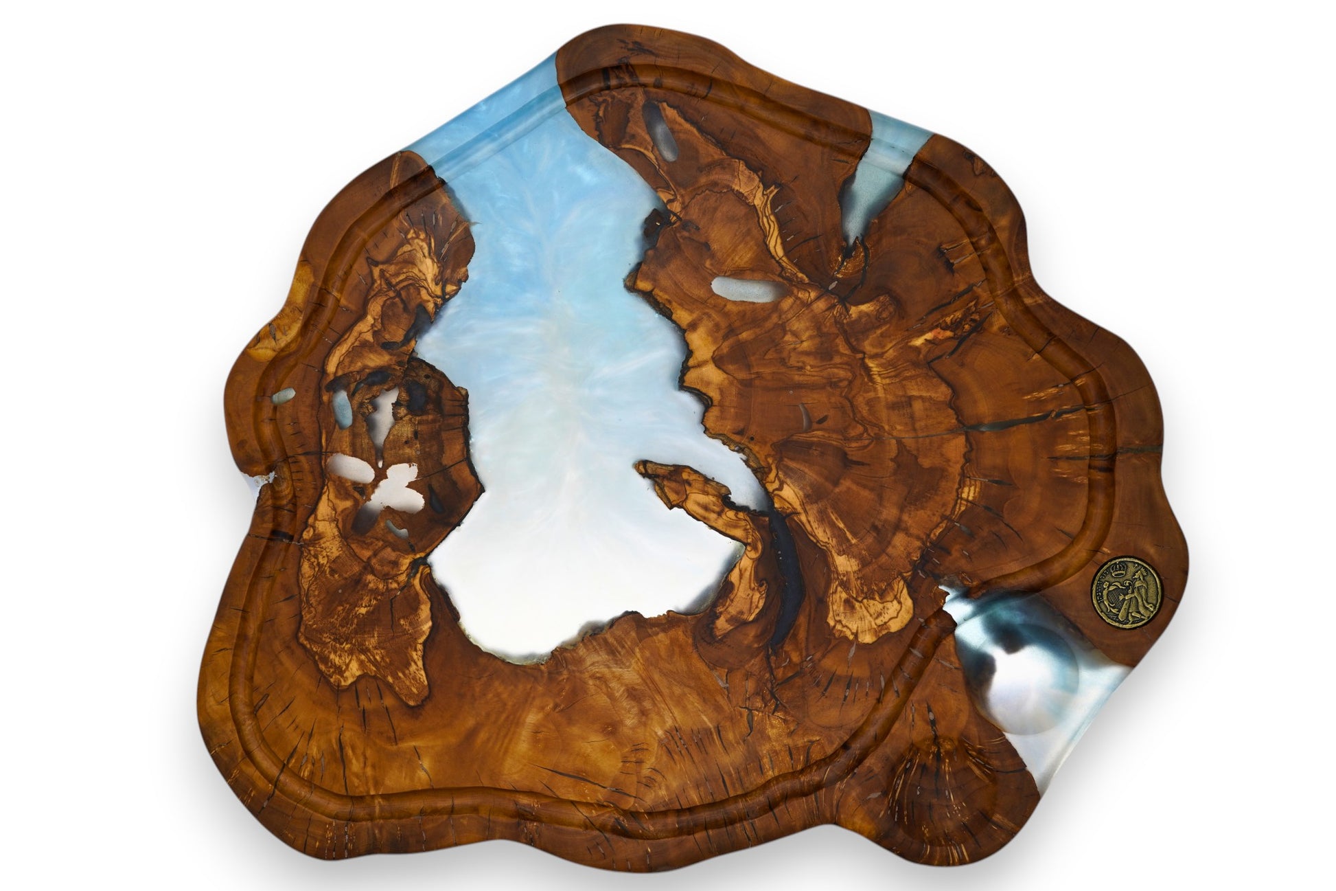 Our butcher block is made from ancient Israeli olive wood, hundreds and even over a thousand years old, combined with high-end crystal epoxy that reveals the natural grain, depth, and textures etched into the wood over generations.