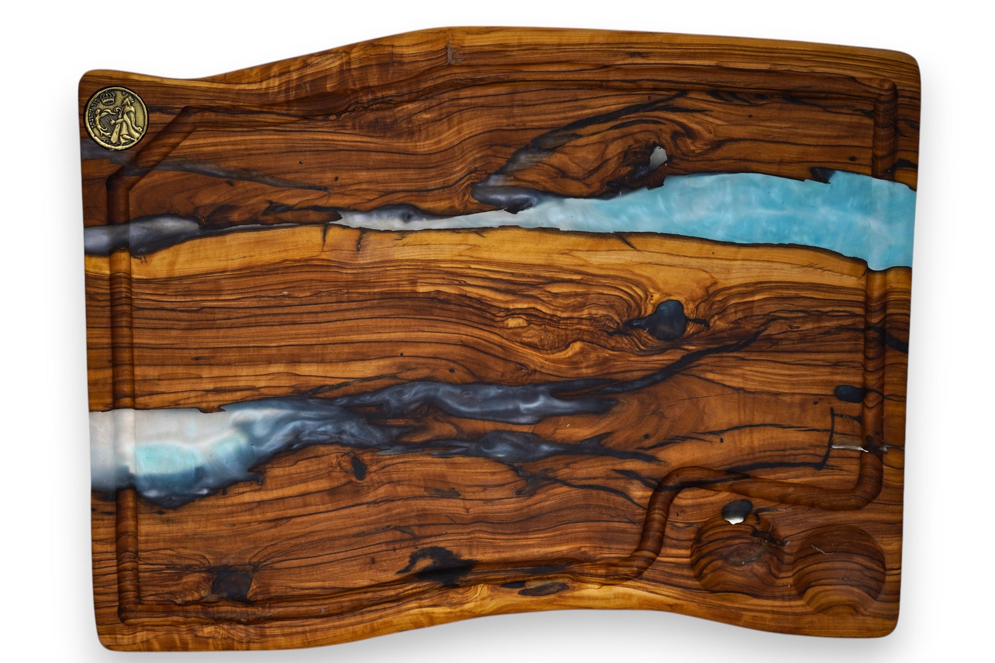 Our butcher block is made from ancient Israeli olive wood, hundreds and even over a thousand years old, combined with high-end crystal epoxy that reveals the natural grain, depth, and textures etched into the wood over generations.