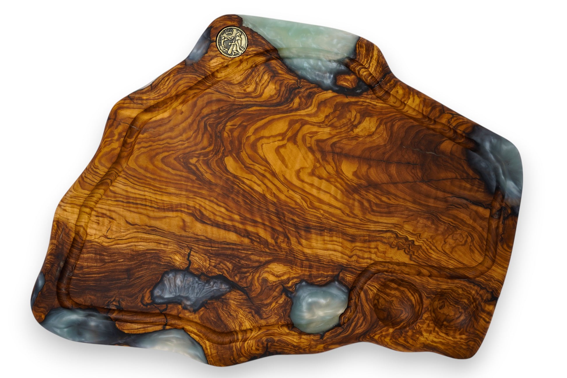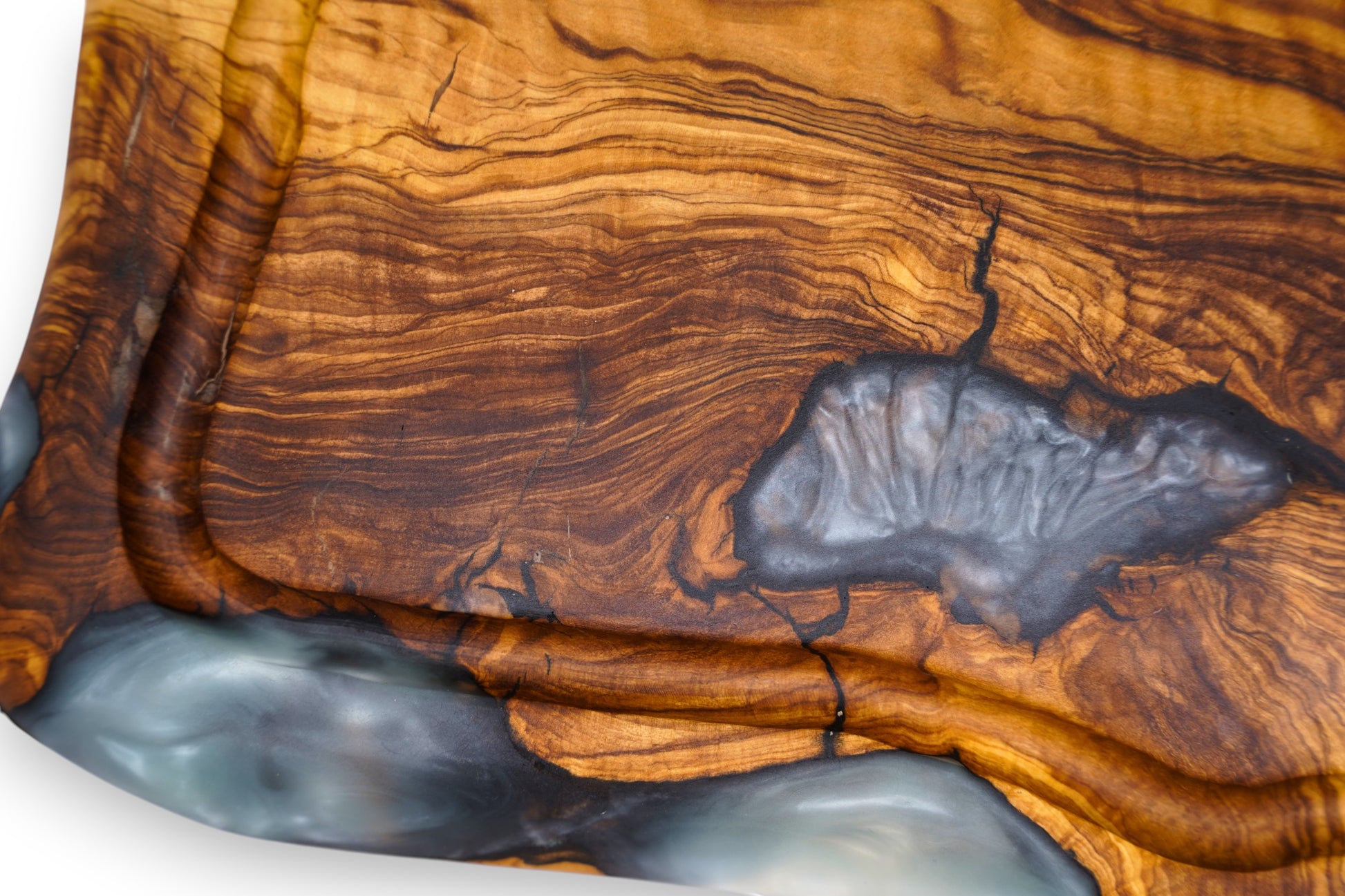 Our butcher block is made from ancient Israeli olive wood, hundreds and even over a thousand years old, combined with high-end crystal epoxy that reveals the natural grain, depth, and textures etched into the wood over generations.