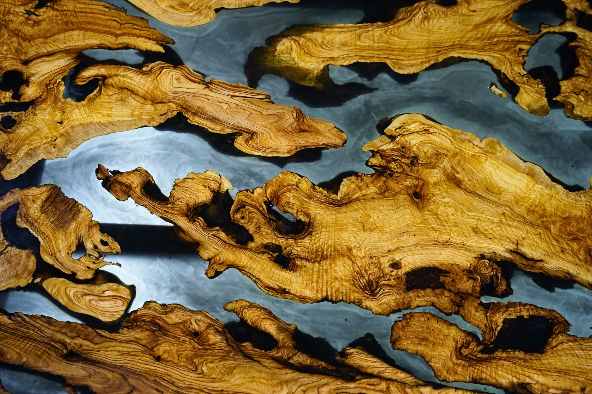 “Olive Glory” Dining Table – 1000-Year-Old Olive Wood & Black-Crystal Epoxy